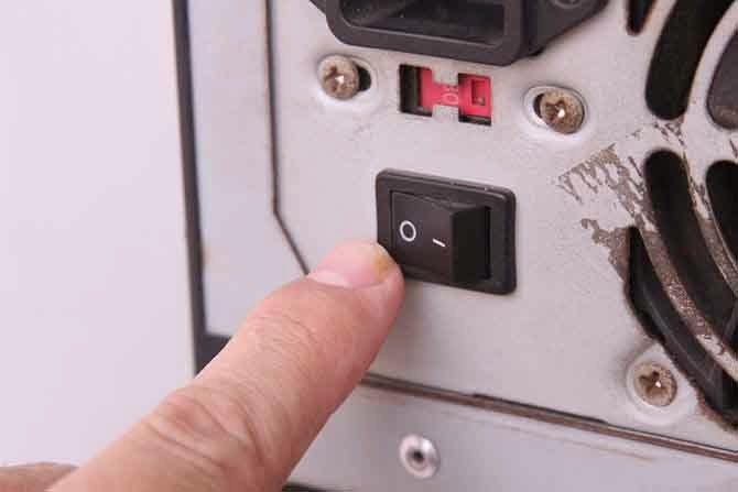 Locate a rocker-style switch at the back of your PC (if applicable), and